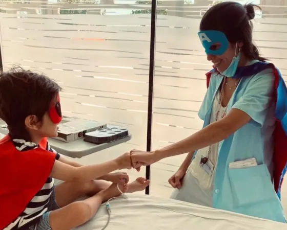 A pediatric oncology patient receiving cancer treatment at the SJD Barcelona Children's Hospital