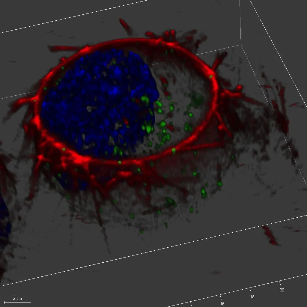 - Multichannel confocal and transmitted light imaging of living cells or fixed samples.